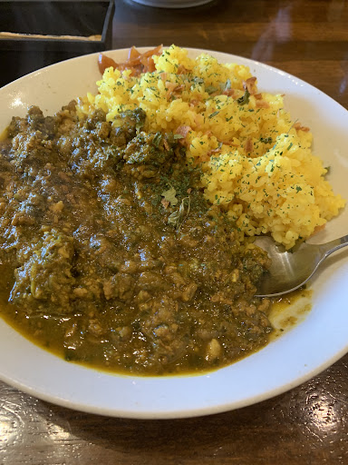 Read more友人とランチで入店。キーマカレーとポークカレーにそれぞれ大盛り・セットコーヒーを注文。 気さくなマスターで、ちょこちょこ話しかけてくれます。店内の内装や、カトラリーも比較的マスターの趣味がやんわり反映されています。 カレーは、ポークカレーとキーマカレーでそれぞれ、ちゃんとスパイス比率が違ってて(マスターの雰囲気から、これが通常運転なのかは判断しかねますが)、風味が違ってて良し! 自分注文したポークカレーで言うと、食べた後に爽やかな辛味が喉にピリピリきます。いい意味で。 豚肉もゴロゴロ入ってて、豚の脂身の甘みをしっかり味わうことができて、満足。 セットメニューで注文したアイスコーヒーも、目の前で大きめの氷をぎっしり詰めたコップに熱々のコーヒーを注いでくれたのですが、予想以上にしっかりした苦味・風味のある美味しいアイスコーヒーを頂けました。 量もスター○ックスで言うところの、トールよりもやや多めくらい。 色々と写真を撮りたかったところですが、マスターにトークで絡まれかねないと思い断念。 総評: マスターのキャラが濃く、客との相性で評価が分かれそうなのと、お冷やが美味しくなかったので−☆の判断でしたが、値段に対してカレーもコーヒーも満足度が高いので☆☆☆☆☆!