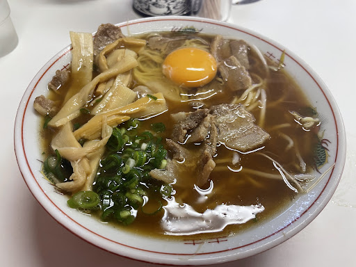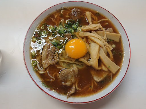 私は中華そばの「肉入り(中)」と、生卵をトッピングして注文しました。甘辛く煮込まれた豚バラ肉がたっぷりのっていて、これがまた絶品です。最初は少し塩辛いかなと感じましたが、ご飯と一緒に食べるとちょうど良い塩梅になります。さらに、生卵を溶いて麺に絡めると、味がまろやかになって、さらに美味しくなります。生卵をラーメンに入れるのは初めてでしたが、こんなに相性が良いとは驚きでした。徳島ラーメンの入門編としても、非常におすすめできる一杯だと思います。