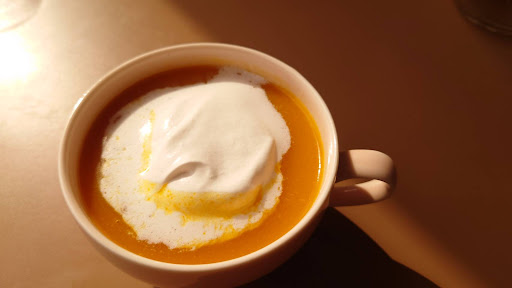 あ、ご飯は美味しかったですよ。 サラダは自家製のソースで甘い感じでした。 スープはカボチャのスープ、濃厚で臭みもないです。 ハンバーグは、ふわふわで外はカリカリ、後から醤油とバターを乗せて食べるタイプで付け合わせはポテトとピーマン。