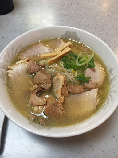 Read more鳥だしがトンコツより優っていて、一般的な濃い味徳島ラーメンよりあっさり目。とはいえ、しっかり唇コラーゲン💋。 徳島ラーメンの特徴的な肉も、ここのは見た目からしてロースのチャーシューなんだが、実は甘めのすき焼き味が染み込んでいて、ストレートが来た!と手を出したら、バックスピンがかかってるじゃん🤭と打ち取られた。 ラーメンのサイズは、小盛 大盛 特盛で、それぞれ、1玉、1.5玉、2玉と教えてくれたが、香川坂出のうどん屋で、大を頼んだら食べ過ぎたカエルみたいになったばかりなので、小にしたら、小腹が空いた時のしっかりサイズくらいだった。一般の3/4くらいかな。かと言って、大にすると、やっぱり1.2倍くらいになっちゃうから、肉ラーメンなら小、普通のラーメンなら大が、よい腹具合。 麺の硬さは、柔らかめ。このお店50年くらいしてるというから、要するに、昔の味だけでなく、昔の硬さまで維持してるのでしょう。それはそれで、そうわかれば、あとは、2回目に硬めに出来るか聞いてみる。
