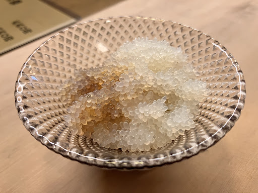 サワラのお造り(炙り)と握り寿司は、もう一度食べたい感動ものでした。バーナーで炙っているそうですが、湯引きしているかのような繊細さ。 タコのたまご=海藤花(かいとうげ)が珍味♥️