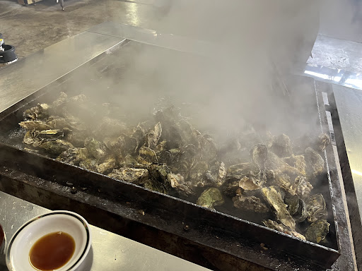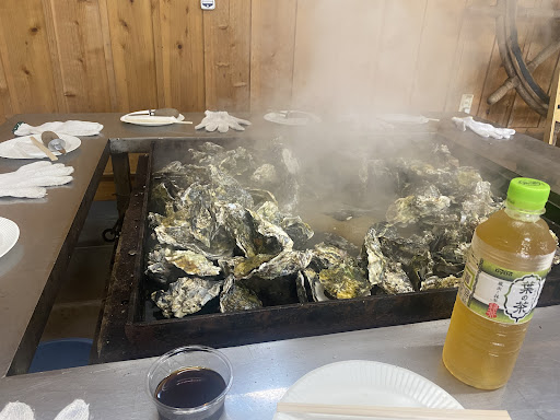 20250316 前から気になっていたのですが、地元の方から教えていただき来店しました。 結論から言うと今まで行ったことのある牡蠣小屋は手緩かった!🤯😂と言わざるを得ない鮮度と牡蠣の圧倒的な物量、そして一番の衝撃的なのはテーブルごとに設置された原動機付きのフタ+どデカい鉄板で焼き蒸すスタイルの牡蠣。 牡蠣小屋の牡蠣といえば網焼きの上に牡蠣乗せて食べるかバックヤードで調理されたものを運ばれてくるものだと思っていたのですがこちらは違います!殻付きの牡蠣がバケツいっぱいにシャベルで🪣豪快に盛られたものをどでかい鉄板にざっと流し込んで(牡蠣を流し込むという表現が適切かどうかはさておきそのくらいの物量の牡蠣が鉄板に放り込まれます)原動機付きのどでかい鉄蓋で蒸されます。 持ち込み飲食も可で(???)自分でも何を書いているのか意味がわからないですが、持ち込んだ飲み物食べ物有りでとにかく牡蠣が楽しめます、、逆に牡蠣は3500円で食べ放題ですがそれ以外はわかめの味噌汁と牡蠣飯が無料で、野菜類や、お茶、水など欲しい人は持ち込んだ方が良いです。 備え付けにポン酢と醤油と七味はありますが、家から薬味やこだわりのポン酢や醤油持ち込みたい人とかは持って行った方がいいです。