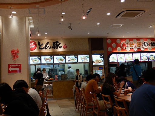 このスペース全体的には食事はジャンルによって店が数店あり食券購入と提供される場所が数か所(ちゃんと見なかったけど多分4か所)ある。 食べ終わった後の食器...