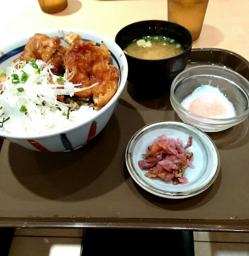 三元豚のカツ丼を注文。 少し甘めの味付けになっている。 みそ汁はインスタントだと思われる。 「あさげ」と同じ味がした。 (あさげに具材を追加したものと思う。)