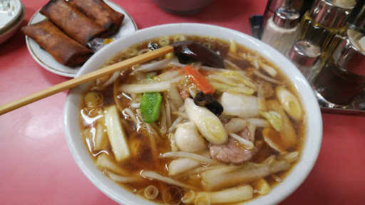 Read more2023/3訪問 夜に出かける用事があったので、夕飯は外食に。 通り道にあり、ランチ時間には車がけっこう止まっているこちらのお店へ。 先客無し。 私は広東麵。 主人はチャーハン。 それと春巻き。 配膳めっちゃ早い。 10分かからない。 と思ったら、出てきた春巻きが焦げ気味。(写真奥に映っています) 揚げ過ぎだね!?と思っていたら、中は冷めている。 あぁ~~一度揚げておいて、注文があったら二度揚げする感じね。 だから早いのね。 けどさぁ、中冷たいのはどうかと思う。 ラーメンもチャーハンもそれなりだけど、結構いい値段す...
