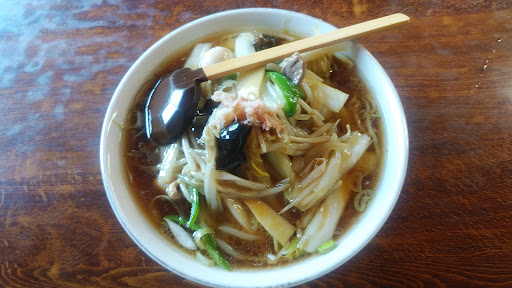 正直言って、美味しいです。 今回、お薦めの広東麺大盛を頼みました。麺は中太縮れ麺。広東麺ですが、あんがどろどろしていません。味もあまり甘くない。海老(バナメイ),ウズラの玉子,蟹はカニ缶?の解し身がてっぺんに少しのっかっている。白菜の茎は繊維に沿って結構幅広に切ってあり、?って思ったが、食べてみて正解。「強力な火力では、この位幅広でないと溶けてしまうんだ!」ってこと。 スープも濃過ぎず、薄過ぎず、甘過ぎず、塩っぱ過ぎず。 後味も良いです。 以前食べた時は、自動車学校に通っていた時だから、40年前?! きっと作り手も代替わりして、ラーメンもより進化しているでしょうね!