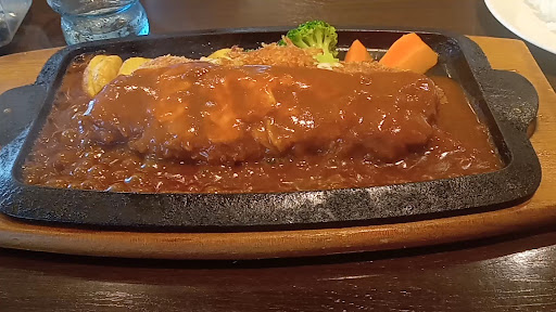 Read moreクチコミ評価が良かったので訪問しました、私は人気NO,1の焼きロースカツセットを、妻は天使のエビフライセットを頂きました。 焼きロースカツは、豚ロースカツレツを焼いた鉄板にのせ、デミグラスソースらしきものをかけた料理でした、美味しいと思いますが、私の好みとしては、ソースが掛かっているぶん衣がサクサクしていないのでチョットイマイチかな? 妻の注文した天使のエビフライは、ニューカレドニア産高級食材のエビを使用しているらしく、珍しい海老フライだと思いますが、小さくて数も2尾しか有りませんでした、味的には美味しいけど物足りなかったみたいです。 セット物のは、サラダとスープ、コーヒー又はアイスクリームが付きます。 妻はお決まりの食後にデザートとして、本日のデザート盛り合わせを頼みました...