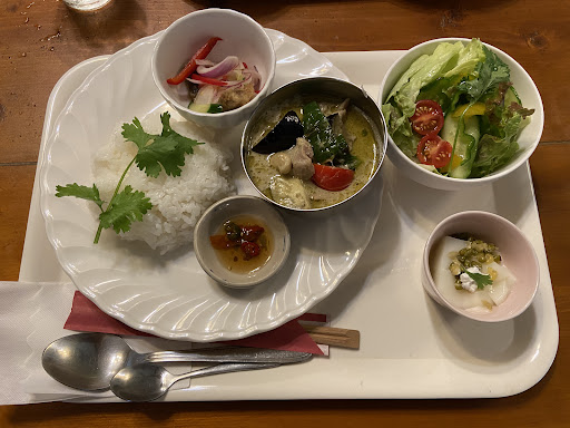 続いて、メインランチのグリーンカレーを頂き、衝撃が走りました。こんなに美味しいグリーンカレーは今まで食べたことがないっ!!グリーンカレーの辛さはしっかりと、ココナッツミルクの風味が絶妙で、主張し過ぎないので全体のバランスが完璧です。コクが深く、このグリーンカレーのためだけにもまた来たいと思えました。