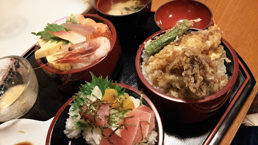 お寿司も色々あり、三種類の丼が楽しめるセットなどもありました。 自分は 料理は薄味が好きなので、こちらは比較的 濃いめの味に感じます。