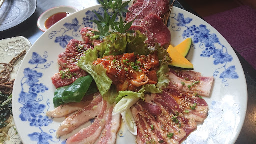 友人と伺った際は、お昼から焼き肉を単品で注文。 どのお肉も柔らかくて美味しい。 なかでも、壺カルビが美味しかった。 お肉が長いので、ハサミを一緒に出してくれます。 それで切って焼けと言う事だと思い切ろうとしたら、まずは長いままで軽く焼いて、それを切って壺に戻してタレをからめ、もう一度焼いて下さい。との事。 なるほどね。せっかく長いまま出してるのに、最初から切られたら意味ないもんね。 帰りには、お店で売っているコチュジャン(実際は違う名前が書いてあった。サムヨムジャン?みたいな)それを買いまし...