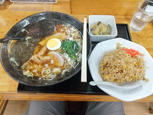 醤油ラーメン750円と半チャーハン250円を注文。 小鉢も付いてきました(冷たいナス天)。 ラーメンは器が平たくデカい。 麺は手打ち麺なのか柔らかいが、なかなか旨い。 スープはやや薄味ではあるが、旨みがあり好きな味でした。 半チャーハンはややカタめではあったが、250円ならアリです。 小鉢のナス天が柔らかで旨かった。
