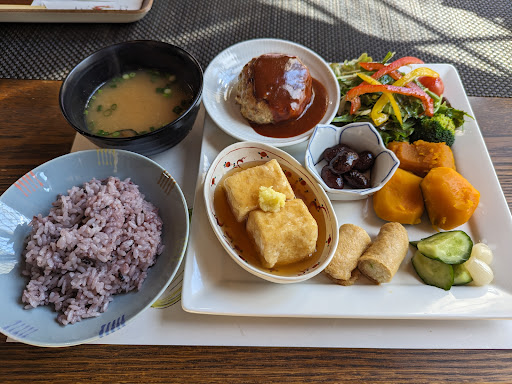 Read more菜ゆーる(さゆーると読みます) 那須は雰囲気のよいお店がおおいですが ここもロケーションよし味よしご主人たちの人柄もよし、ランチセットを注文しました(メニューは週替りのようです)本日はハンバーグやかぼちゃの煮物などなど6品となめこ汁、ご飯は古代米でしょうか?もう若くもないお腹がはちきれんばかりです、ご飯のおかわりも出来ますが十分すぎます、食後はデザートとコーヒー(こちらはポットで出てきます)暖炉などの調度品も素敵で、食事と時間と美味しく過ごさせてもらいまし...