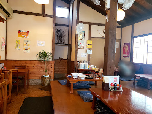 駐車場は砂利で10台ほど。 店内はそこそこ広くカウンター×5、カウンター横にテーブル2人掛×1で小上がりに座卓4人掛×7ある。