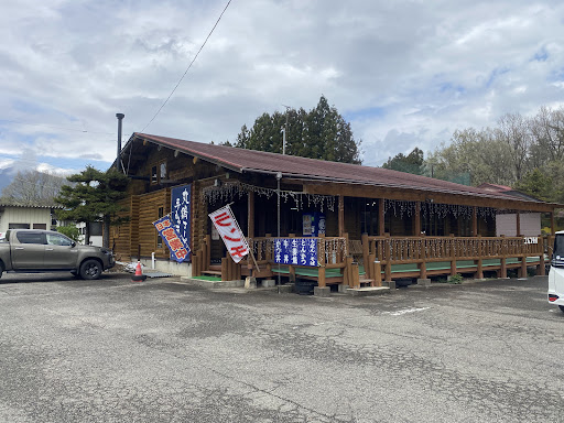 お盆の高速渋滞で、大幅な時間オーバーとなり、お腹も空きすぎて、旅館に入る前に少しの腹ごしらえと立ち寄りました。山小屋風佇まいですが、 店内がやや暗い、食事処なんだからもう少し明るい雰囲気には出来ないのだろうか。 私よりもお姉さんの女性が一人で接客、愛想はイマイチですね。 プラカップのお水がちょっと嫌だな、水質の良い地域なんだから、ガラスのコップにして。 丸鶏の手もみラーメンを注文。 鶏の出汁が効いて、味は悪くない。 北関東出身ですから、手打ち麺に慣れているので、手もみのヒラヒラした麺は好きです。 安定したホッとする味の優しい感じの醤油ラーメン。 定食などもあるようです。 おしゃれだとか、現代風とかは無関係だけど、もう少し店内照明考えた方がいいかな。 観光客も多い地域で、おしゃれっぽいとか、TVとか紹介した店は混んでるでしょう。そんなのに興味はない方には良店かも知れませんね。 ラーメンはとても好みでした。 ラーメン好きは、好みが分かれる事多いので、食...