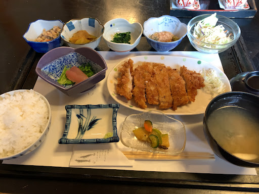 平日ランチ、大人2人子供2人で伺いました。 店内は誰もおらずベビーカー入店も快く受け入れてくれました。メニューは一つのみ。 座敷で暴れまくっている息子を椅子に移動させる時もとても親切にしてくださったり、『お母さんご飯食べて』と息子に離乳食を食べさせてくださったり、本当に母としては至れり尽くせりのランチでした。 おかげで私はとても美味しくてボリューミーなランチを全部食べ切ることができました!とんかつとお刺身と小鉢がたくさんで本当に美味しかったです! 最後に子供達にヤクルトのお土産も頂きました。 出入り口の階段でのベビーカー上げ下ろしも手伝っていただいてありがとうございました! とにかく大満足な旅行初日のランチでし...