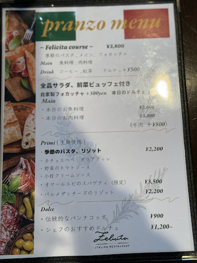 Read more本格イタリアンとうたいつつも、所々に和風テイストもあり、雰囲気も味もファミレス感を感じてしまう。 特にサラダのドレッシングが・・・ ファミレスならありだと思うが、価格帯をみるとファミレスでもない。 サラダバーは好みの問題だろうが、ゆっくりと食事をするとなると落ち着かない。