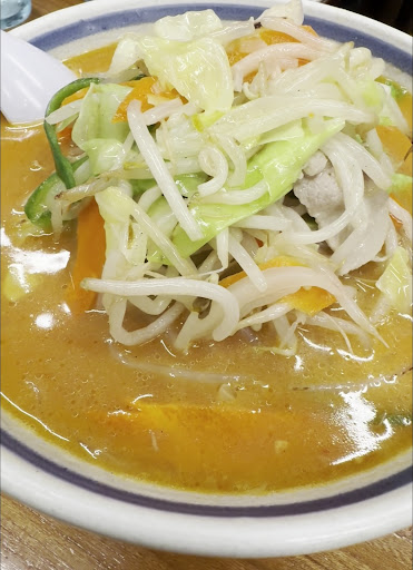 Read more地元で人気のラーメン屋さん。 看板メニューは野菜ラーメン、しょうゆ、味噌、塩味の3種類から選べる。店員さんに人気を聞いたところ味噌か塩とのことでした。 夜まで通し営業しているのでランチを食べ損ねた時でもふらっと行けるのがいい。 今回は、野菜ラーメンの味噌味と餃子セットを注文。 野菜ラーメンはもやし、キャベツ、ニンジン、ピーマン、タマネギ、豚肉と具だくさん。 麺は中太ストレート麺で食べ応えあります。 スープは鶏出汁がメインなのか、見た目よりくどさがないし、重くないので炒めた野菜が乗ってても味のバランスが良く感じました。 餃子は背脂が入っていると書いてありましたがどちらかと言うと野菜の食感が強くジューシーという感じではない、無理して頼まなくてもいいかな。ライスはお米がつやつやでおいしかった。 家系ラーメンみたいな濃さはないので白米なくてもラーメンだけで個人的には十分おいしかった。 店員さんがテキパキ...