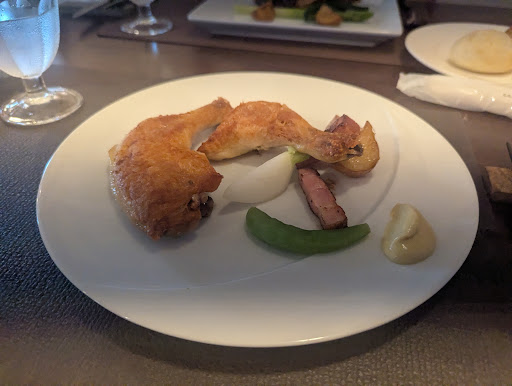 Really nice, friendly restaurant in Nasu. We had lunch and ordered four set meals which included salad, soup, and a small amuse bouche. The food was delicious. The portions are not huge, but we thought the quality was good. Four adult sized meals were enough for us (two adults, two kids). The meal cost about 8,000 yen and I thought it was a fair price. We wanted to try a dessert (they look great in the photos) but we were full so maybe next time. We ordered two chicken confit and two harami steak. The chicken...