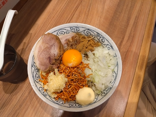The ramen here is inspired by Jiro Ramen. It was very delicious. The pork slices are very big and filling. Please try the garlic topping. You will be satisfied. I also added a quail egg as an extra topping. Very satisfied! My friend had the Mazesoba, which was also...