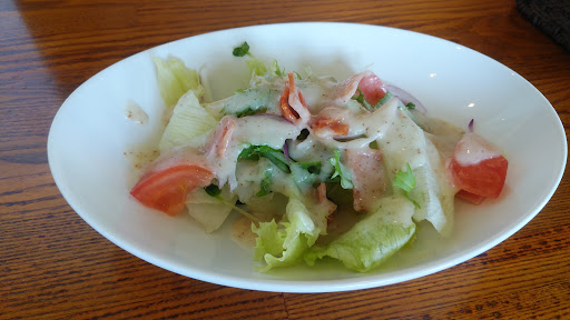セットメニューを頼みました。サラダ、デザート、飲み物付きとありましたが、唐揚げと野菜もつき、コース料理のようです。