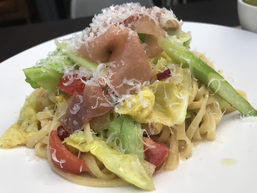 おススメの春キャベツのペペロンチーノセットを注文。運ばれて来た時に、目の前でチーズを好きなだけ削りかけてもらえました。これは嬉しい!久々にとってもおいしいパスタをいただきました。また食べたい! セットのスープ、パンプキン?これも美味しい!微かに酸味を感じる爽やかな珈琲も悪くなかったです。 こちらのカフェ...