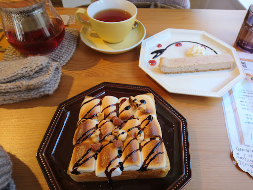 隠れ家的オシャレカフェです。 お店に入った瞬間に、紅茶の香りがとても心地よく、落ち着いた空間に癒やされました。 この日はトーストにチョコマシュマロをあしらったメニューとチョコレート風味の公知をオーダー。 とても、美味しくいただけました〜。