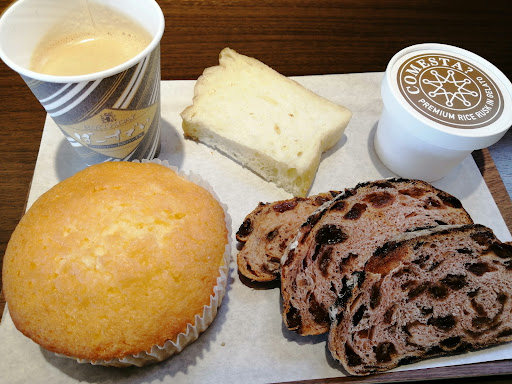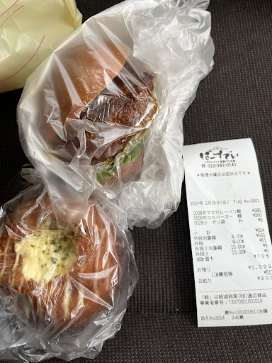 イオンモール名取の近くのパン屋さんです。 朝早くからやっているのがパン屋さんの良いところ。 日曜日は朝7時からやってるみたいです。 朝食を買いに初めての訪問。 初めての店では必ず買うカレーパンと、目についた牛コロバーガーを購入。 店内飲食ができるスペースもありました。(私はテイクアウト)