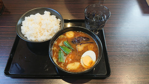 Read more基本的にはチェーン店の場合、評価や口コミの投稿などはしないのですが、今回は自身が大好きなスープカレーが期間限定で販売されていたので、それをいただきたく訪問したため投稿する運びといたしました♪笑 ですのでスープカレーのみの評価となります。 注文したのはローストチキンスープカレー、ライス大盛を注文です。 スープカレーだとライスの量はこれ以上増せないのかわかりませんが、大盛で300gなので通常のルーカレーと比較しても量が少ない設定みたいです。大盛で400gなら良かったのに、これはかなり残念…。 そして着丼。 見た目はとても美味しそう。 スープを飲むと美味しい♪ 県内のスープカレー屋さんは何軒か回りましたが、こちらのスープカレーはそれらを凌駕すると言っても過言ではないと思いました。うまい! 野菜もナス、オクラ、キャベツ、ニンジン、ジャガイモなど結構な量が入っています。 その他に一口大の大きさのローストチキンが数個とゆで卵なのでスープはわりとボリューミーです。 お好みで後入れのスパイスが付いてきました。 デフォルトでもわりと辛味はありますが個人的には足りないので、後入れのスパイスとトビ辛スパイスを両方入れて食べると、尚美味しい♪ あっという間に完食です。やはりライスが足りなかったのが残念なので、それが増せれば星5でした...