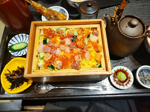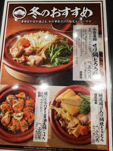 Read more店内に入ると、内装も照明も雰囲気を盛り上げ、また津軽三味線のBGMが流れていて、東北地方の農家の土間のあるお宅ヘ、おじゃました感じがありました。 中央に、座敷席も有り、ますますいい感じで、注文しました。 たのんだのは、天ぷら&鶏柚子うどん1280円と、生姜焼き定食880円を注文しました。定食はご飯、味噌汁がお替り自由だそうです。今回は、ランチでうかがったのですが、熱燗で美味しいお酒も注文して食事をしたくなりました。 肝心な食事の感想は、イオンモール名取の和食屋さんの中では、1、2かなけっこうおすすめです。