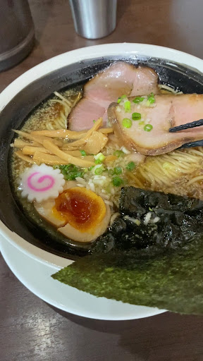お店は、名取バイパスのTSUTAYAの隣にあるケーズデンキの裏手にあります。駐車場は店舗前に4台分ありますが、近隣に大きな駐車場の店舗が沢山あるので、そちらで買い物をしましょう(笑) 店内は、小上がり2卓、テーブル2卓、カウンター4〜5人掛け、あと2人掛けのテーブルが1卓あって、22〜23人のキャパって感じです。6〜7人待ちで20分、注文して5分でしたので、人気店にしてはまぁ早い方かな。 初なので、お店の看板メニューのいぶし中華そばを注文。麺は好みに合わせて、標準の細麺、平打ち麺、平打ち縮れ麺から選べます。ここは、平打ち縮れをチョイス。味付けも、こってりを選べるとの事で、思わずこってりをチョイス。未知のラーメンに、かなりのカスタマイズを実行🤣 それに、お好みチャーシュー丼310円をオーダー。 熱々のスープは、えぐみの無い魚介系。スッキリしすぎて無いのは恐らく、コッテリをチョイスしたからかな。でもスッキリ寄りのコッテリでとても良いです。麺は、やや太麺系の平打ち縮れ。コシもしっかりして、ツルツルの喉越しでとても良い。麺を啜ると、スッキリの魚介系スープを同時に汲み上げて、口に運んでくれます。かなり旨い‼️ トッピングは、煮卵、チャーシュー、メンマ、海苔、ナルト。特にチャーシュー!もちっとしつつ、適度な弾力と歯応えで、絶妙な肉感です。味付けも辛すぎず、肉の旨味でラーメンスープを盛りあげてます。 この日は箸が止まりませんでした🤣 お好みチャーシュー丼は、あまり期待してなかったんですが、こちらも旨し‼️ ラーメンと同じチャーシューだと思います。それを小さいサイコロ状にして、丼になってますが、これも絶妙です。是非ご一緒に食してみて下さい。 もっと早くに訪問しておくんだったと悔やまれる、美味しいお店でした。家系はそろそろ辛くなってきた、50代のラーメン好きのあなた!こ...