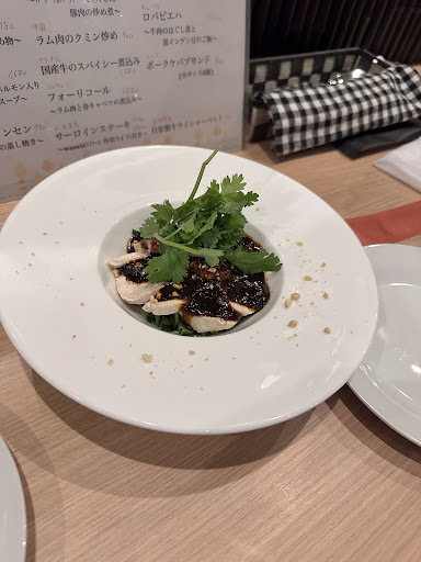 人生初の⭐️5つ‼️旨い🍴😆✨飲み放題も最高‼️初来店で、メニューも多いので とりあえずコースを予約。前菜に、『ラタトゥイユ』と『よだれ鶏』がおしゃれに個別にガラス小鉢に盛り付けられ、ビールも良いけどスパークリングワインが欲しくなる味🥂 いい感じに胃が刺激された所で、『羊飼いのサラダ』なるものが来る。玉葱やトマト等が綺麗に角切りされ、色鮮やかだ。生の玉葱の口が臭くなるのがかなり苦手の為、どうしようか恐る恐る口に入れた😆裏切られた!全っっく玉葱臭くない‼️どんな魔法なのか レモン風味が爽やかに、玉葱の甘味や、小気味良い歯応えが口直しにちょうど良く、これもワインが進む✨そこへメインの『平目のサガナギ』という初耳な料理が運ばれた。ギリシャ料理らしいが、フワフワの平目がスキレットの中でトマトと出逢いチーズをまとっていた。これは間違いない旨さ🍴😋欠点は二人前なのに1人で全部食べてしまいたくなる所だ。 これには赤ワインが欲しくなるも、この日の赤は、癖がありスパイシーな風味でちと苦手😅なので、自家製サングリアをいただく🍷料理と合わせるのは難しいかもしれない。これだけで、完成している。これもたいらげ、次の飲み物を悩み店主に相談すると、ワインベースの『アメリカンレモネード』なるカクテルをすすめられ、試す。かわいらしい赤い鳥のマドラーがグラスに揺れ、グラス内の美しい赤と黄色のグラデーションがなまめかしく混じり合う。芸術的な雰囲気に心地よく酔えた。悩んだ飲み物が、これで締まった🎆そこへチューチーガイとジャスミンライスが運ばれる。これも旨い🍴😆✨タイ風カレーだというが、辛さは控えられココナッツだろうか?優しい風味でサラッと食べられた😋そしてデザートは『かぼちゃのチーズケーキ』…正直呑んでる時にデザートはあまり得意ではない。ましてどちらかというとアルコールのアテに苦手なかぼちゃなので、...