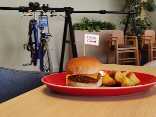 「ハンバーグカツバーガー」はさすがHACHIのハンバーグだけあって肉汁がジュワッとあふれます。一見メンチカツのようで珍しいハンバーグカツですが、肉質が良くて別料理です。付け合わせの「バターポテト」は、ポテトの歯ざわりをなめらかにするほどバターが濃厚です。見た目にコンパクトのようで実際には満腹感のある味です。600円台と安さも魅力で、内容を考えるとファストフードよりコスパが良いのではないでしょうか。