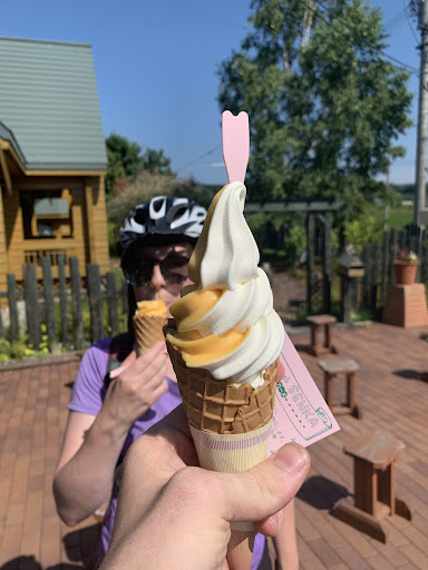 暑い日でした〜これからが本番ですね ソフトクリーム美味しいお店千花さん 今日はシャインマスカット味に しましたよん^^/甘酸っぱい旨いっすね やはりアイスコーヒーも飲む☆ こんな日は冷たい物に限りまする♪ ご馳走様でした(_...