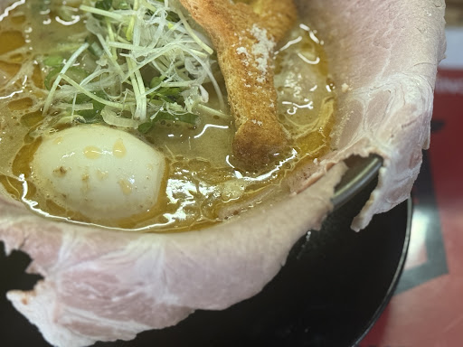 I ordered the set of lobster ramen and seafood rice bowl. First, the ramen—the richness of the broth was astonishing. The char siu, clearly prepared with careful heat control, was tender without protein overcoagulation. The biscotti, dipped in the soup, was unexpectedly delightful. The soft-boiled egg was cooked to perfection, and the shredded white scallions added a refreshing contrast to the rich soup.