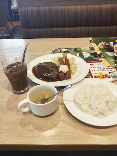 Read more遅めの昼ごはんで来店。注文してから提供されるまでに結構時間がかかった。 しかし注文した物とメニューに載っている物の差が激しい。 季節のもものパフェを注文したらメニューには多めの桃がのっているのに実際にきたのは小さな桃のカットが3つ…上のクリームも少なめ。 その時点で嫌な気配がしたが、次にきた期間限定メニューのグリーンカレーと鶏のチキンフライのセットが…… カレーはまだ良いが、チキン3切れで冷めてる。ご飯、ベチャッとして餅のように固まってる。スプーンでプリンのように割って塊をカレーの器に入れて食べた。 これは流石に客に出したらダメだと思う。今までの来店したガストでも...