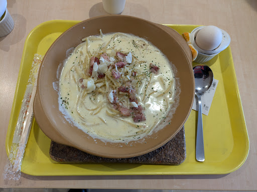 チーズがいっぱいという印象がある店です。 ちょうどベーコンのパスタの感謝祭をやってて、900円で、フライドポテトとドリンク付きでした。