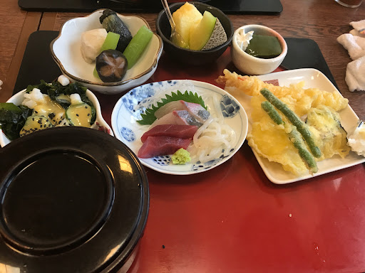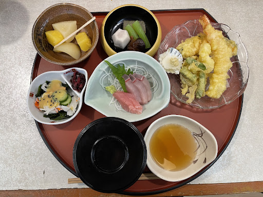 Read more先日、香里園のワンちゃんトリミングの際、ランチで来訪。ここは3度目のランチです。 駐車場は目の前のパチンコ屋に停めれば無料です。 前回、相方の頼んだ鰻が美味しかったので、印象は良いです。お店の雰囲気は、年季の入った昭和な雰囲気。ただ、寂れ感は薄く、手入れの行き届いた寿司屋です。メニューは撮り忘れて写真なくて恐縮ですけど、かなり豊富なメニューで、大概の好みには対応しくれます。今回は、お造り定食を頼みました。お造りは勿論、天ぷら🍤、煮物、少量デザート、お新香まで付いてるのでお得です。食べてみて感じたのは他の小鉢は無くて良いから肝心のお造りのボリュームを増やして欲しいですね。。これ以外は、全体的に無難な味わいに仕上がっており、特に不満は有りません。 和食をコストパフォーマンス良く提供してくれるお店が香里園付近に少ないので、このお店は貴重な存在です。他のお店高いですからね(笑) 香里園付近で、また和食🍣食べた...