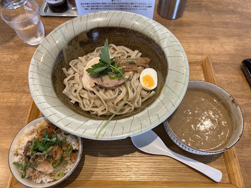一口目はとっても美味しい つけ汁は、どろっとしてて、コクがあり、麺とよく馴染む。 麺は極太麺で食べ応えあり、何口目かまでの満足感は高い スープはいろいろ入ってるらしいけど、それぞれの素材に気づくことはないけど、だからこそこの味が出せるのかな。