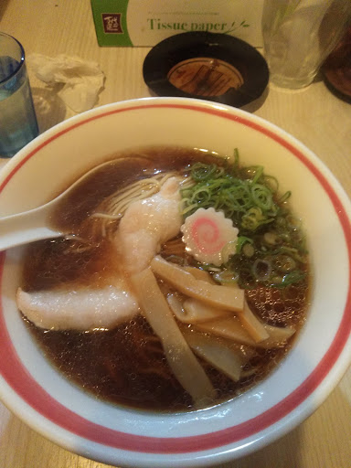 深夜に営業しているのはありがたい! あっさりラーメンと餃子を注文。 ラーメンは、まずはスープがぬるい。 昔ながらの味と書いているだけあって、その通りほっこりする味です。 麺はストレート麺ですが、少し粉っぽく、スープがぬるいから麺もどんどん冷めてきて、麺が伸びるのが早い。 メンマにもこだわりはなさそう。 青ネギがたっぷりめに入っているのは嬉しい。 トータルすると味は素人レベル。しっかり勉強すればまだまだいくらでも美味しくなるはず!