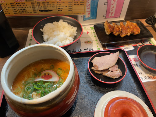Read moreカウンター席のみのお店で座ってから注文します。 可動式のパネルが設置されていて二人以上で行った時は外せるようになっています。 おすすめはつけ麺と蛸壺ラーメンで、蛸壺ラーメンは元々ピリ辛なのですが更に辛さを選べます。ネーミングはやけど→ぼや→半焼→全焼となっていて更に「大炎上」というネーミングの辛さも選べます(食べる前に誓約書あり)。全焼の辛さの3倍~10倍(3段階)選べます。キャラかまぼこ(アンパンマンだったりハローキティだったり)が入っていますが、その可愛さに反してピリ辛なので、そのギャップが面白いです。蛸壺ラーメンは器も冷えにくい構造なので食べ終わったときはかなり身体が温まりました。 つけ麺は量が選べ、スープは具沢山でボリュームがあります。麺の真ん中にチェリーが付いてきます。 キャラかまぼこもチェリーもマスターの...
