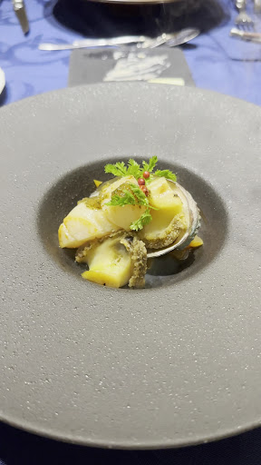 【アワビとホタテ貝柱のポワレ】 蓋を取ると、燻製の煙がふわっと立ち上がり、香ばしい香りが広がりこの演出に思わず声が出てしまいました!🤭 アワビとホタテ貝柱はほんのり焼き目がついていてジューシーで柔らかく、燻製の香が深みをプラスして贅沢な味わいに♪ 香り、見た目、味すべてにおいて素晴らしかったです!