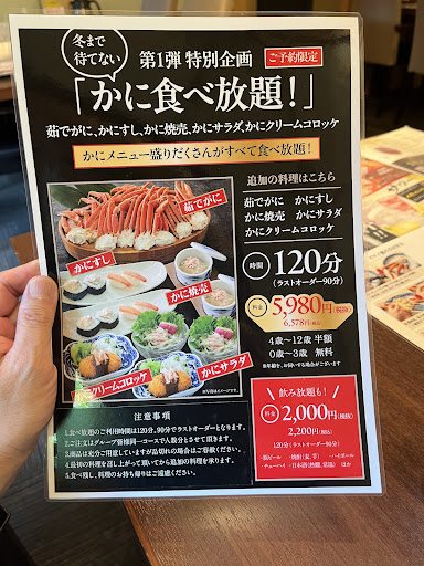 Read moreカニ食べ放題第一弾で利用しました。 枚方がんこ寿司は何度か利用していましたが寝屋川店は初めての利用。 え?こんな所に?な場所にお店がありました。 11時30分に予約してましたが早くに到着したので入店したら、すぐに案内してくださいました。 店員さんの接客は親切丁寧です。 カニ食べ放題でしたが他の料理も美味しく特に巻き寿司は美味しかったです。 カニをおかわりするたびに新しいおしぼりをくれるなど嬉しいサービス。 味はもちろん、がんこ寿司やから間違いないです。 カニサラダ、カニクリームコロッケも美味しかったです。 もちろん茹でガニも身が詰まってて6回もおかわりしてしまいました。 食べ過ぎてごめんなさい。 第二弾も利用させて頂きたいです。 ご馳走様でした。 星が4個なのは、もう少し安かったらなぁの4個です。 お値段...