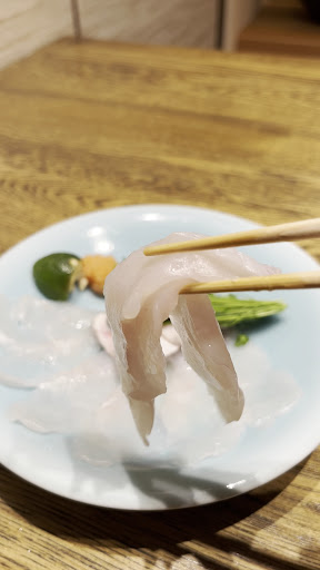 ⚫︎てっさ 厚めに切られたてっさ。皮をゆがいたモノも少しついていました。臭み等一切なく鮮度の良さを感じます。厚切りで歯応えよく身の美味しさを楽しみました✨