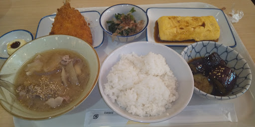 Read more今日はご飯に豚汁・あじフライ・玉子焼き▪なすの揚げ出し?にほうれん草のおひたしを食べました。久々にスーパーのお弁当以外の温かいものを食べたからめっちゃうまく感じた。5品で1120円で楽天カードで120円引きに。ならまぁ、安いほうかなって思った。ただ、レジて会計の時、不慣れな少し年配の男性店員が楽天カードのポイントで120円引く処理を間違えて勝手に会計を終わらせて1からやり直しで手間取り、どうにか処理が終わり席で食べ始めたらさんに年配の女性店員が『楽天カードをもう1度貸して下さいませんか』と。多分さっきの男性店員がレジのやり直しの時に120円を2回分引いたので1回分をカードに戻してくれたんやと思います。女性店員さんの応対...