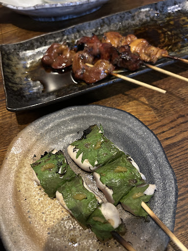 【コース内容】 ・お好きな焼き鳥6本 このコースのみ、焼鳥の好きな部位が選択出来る。これはかなり高評価⤴️自分好みの焼鳥選べるとか最高❣️ 朝引き鶏を備長炭で焼き上げた焼鳥は、鶏がめっちゃ柔らかい‼️タレもかなり口に合いました。メニュー選択する時にタレや塩、部位によってはもっと味の変化を楽しめます。タレと塩をメインに、手羽先は胡椒を選択。梅しそは梅肉とか…ほんま自分好みで嬉しすぎた