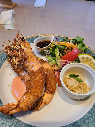 大きな海老が3尾でビックリしました。 メニューは写真付きではなかったので、2尾だろうと想像してましたので… 甘めのオーロラソースがかかってます。 個人的にはマヨ好きなんでタルタルソースが欲しかった… 海老フライは衣が薄くて身も分厚く濃厚なお味で良かったです。 これで1200円は安いです。