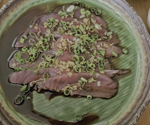 鰹ですが、タレも美味しくビックリするほどの旨さです 刺身も小鉢もどれも美味しい