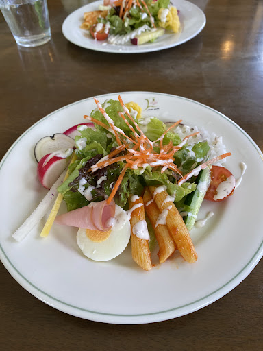 ハンバーグに少し甘めのデミグラスソースと温玉を絡ませて食べるとたまらない美味しさ。 サラダのドレッシングも変わらず美味しかったです。