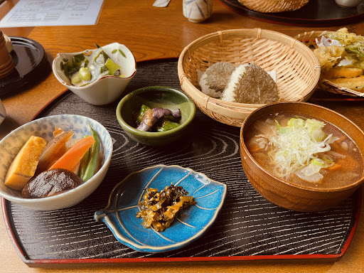 Read more店内はおばあちゃん家に来た感じですね。 なつかしの癒し膳を頼みました。 おむすび、小鉢3つ、けんちん汁、五平餅、漬物がついてきました。 味つけも優しい感じで、ほっこりしました。 けんちん汁、おにぎりが激熱。 ヤケド注意ですが、有難い。 お野菜たっぷり♪ 七味唐辛子が、浅草のやげん堀が置いてあるとはビックリ! 天ぷら盛り合わせは、五品で700円は妥...