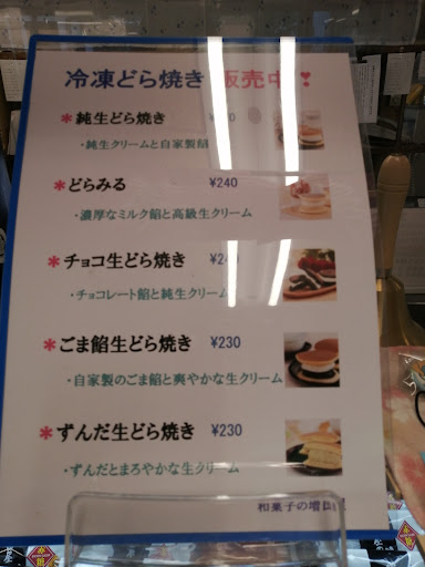 中は近代的なショーケースに沢山のどら焼き 生クリーム入りは冷凍販売のみでした。 ふわふわ生地で餡は甘さ控えめ 生ドラは甘みが強めでした。 店員さんは静かで最初...